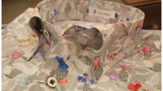 ジャケットなどがかかっていた場所にプリントのシャツをディスプレイ。今年は明るいファッションが流行るはずだった。いや流行るんです。前向いて頑張ろう!洋服からですよ。気分に応じて服を着るじゃないですか、明るい色を着れば雰囲気も明るくなるのです。一番前のプリントのシャツ。