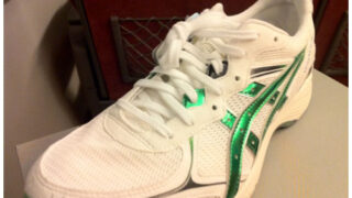 今回の為に購入したのが上のシューズ。ラインがグリーンなので、当然ランシャツもグリーンに。と思って東京に行ったのですが見つからず。とブログに書くと。東京の私の女性の方の師匠。→この方が代々木にいっぱいあるよ~と写真を携帯で撮ってくれて。送ってくれたのがこのシャツ。