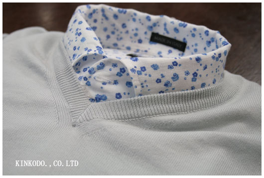 春らしい明るいコットンセーターにインナーはプリントの麻のシャツ。無理やり派手にする必要はありませんが、衿元からはこのような明るいプリントをのぞかせてもいいのではないでしょうか。スプリングセーターをご着用になられる方って意外と少なかったりします。ジャケットを羽織っておしまい。でも今年はもっと軽快にいきませんか?パンツもジーンズやコットンパンツを合わせて、あまり重たいスタイルにはしないで。もう桜が咲きそうです。そろそろ春物と入れ替えしないとね。