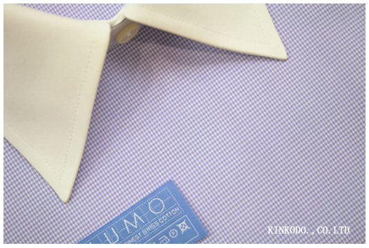 今年は私はチェックに注目だと思います。千鳥格子にギンガムチェック。そして色合いはパープル系、ラベンダー色。チェックはカジュアル系のイメージがありますが、このような細かな千鳥格子であれば遠目は無地。ビジネスでも大丈夫。素材は170番手の細番手。