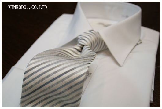 お祝いごとのネクタイです。昔は白地に鶴亀柄のネクタイなどが当たり前のように使われておりましてが、最近はフォーマルでも柄は至ってシンプル。白よりもシルバー系が多くなり、最近の結婚式に出るとフォーマルなスタイルも黒の礼服じゃなく、ダーク系のスーツを着ている方も多く見かけます。ただ若い人の場合はちょっと節操がないのではないか?とも思ったりもすることがあるのですが。勿論ガーデンパーティー式のカジュアルな結婚式も増えてきているので、その装いは難しいのは間違いないですが。