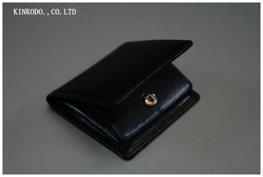 ではありません。こちらは今小銭入れとしては一番多いタイプの折りたたみ式のフォックで止めるタイプ。