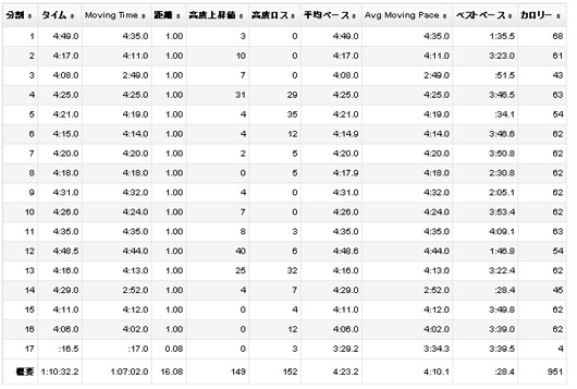 平均ラップ4分23秒。頑張るには頑張ったけど。もしハーフ1時間半を切ろうと思うと、更に9秒縮めなくてはいけない。そんなことできるのか?