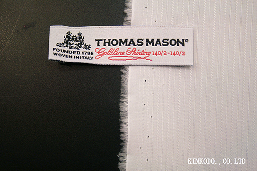 さて、もしかすると当店の生地のアップを楽しみにしている人もいるかも知れません。トーマスメイソンのゴールドラインの白ドビー柄やオックスフォードなどの定番生地が入荷しました。