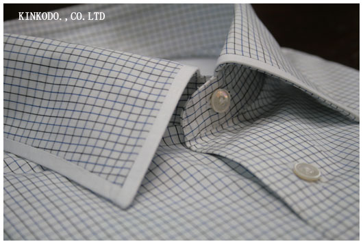 衿の裏側にも綺麗に白の生地が回っています。こんなデザインのシャツを着てると必ずや「素敵なシャツですね」と声をかけられるはず。です。