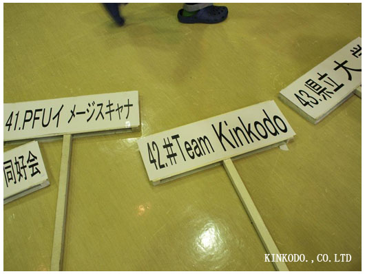 「#team_kinkodo」と言うのはTwitter(ツイッター)で自分たちのチームをつぶやく時のハッシュタグというもの。ツイッターやFacebookなどの繋がりで作ったチームですから、このチーム名。ただ駅伝ですので、区間ごとにランナーのチェックをしてる時に係員の人がまともにチーム名を言えない。「シャープさん」とか「シャープテンさん」とか。来年はチーム名変えよう。