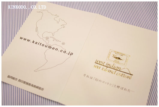 というのも生地商から入荷してきましたシーアイランドコットンの生地にこんなリーフレットが。