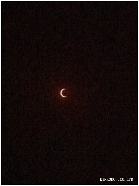 自宅前にiPhoneのカメラに日食用のサングラスをかざして自宅前から撮った写真です。