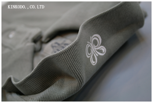 eleventy(イレブンティー)の衿裏です。こちらは蝶をモチーフにデザイン化してます。