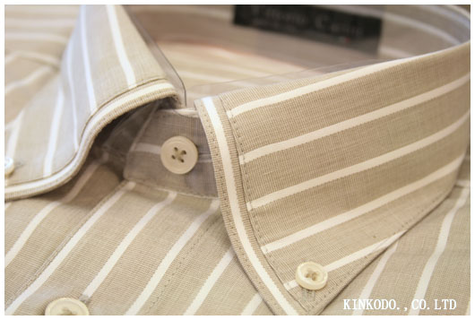 衿を先端で切り替えてストライプを面白いように衿先に出しています。この切替がこの場合はデザインとなっています。