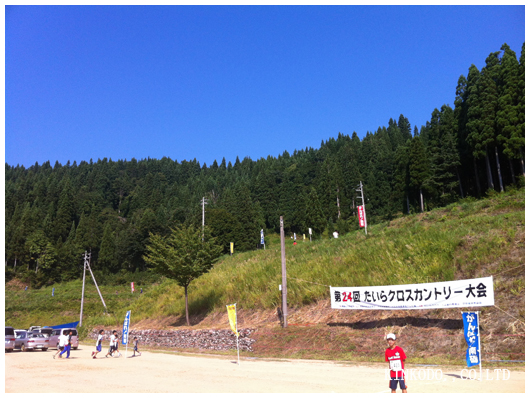 6時20分にチームのメンバーを乗せてたいら「クロスカントリー場」に向かったのですが。余裕を持って「たいらスキー場」の方に到着。ちょっと早すぎた?と思ったら誰もいない。車の扉を開けて外に出ると沢山のアブが車の中に入って大変なことに。とにかく窓を開けて道を戻ります。その時に右に曲がれば良かったものの、左に曲がったおかげで来た道を逆戻りするように走った為、どこに行ったらいいか分からない状況に。Facebookにチームのメンバーが到着したことが上がっていたので、メッセージ入れて聞いたりしましたが、どうやら通り過ぎたスキー場の先らしいことが判明。更に引き返して余裕持って行ったはずがエントリー締め切り20分前。結局車も変な所停められて、既に行く前からクロスカントリー状態。何だかヘトヘトで会場到着。