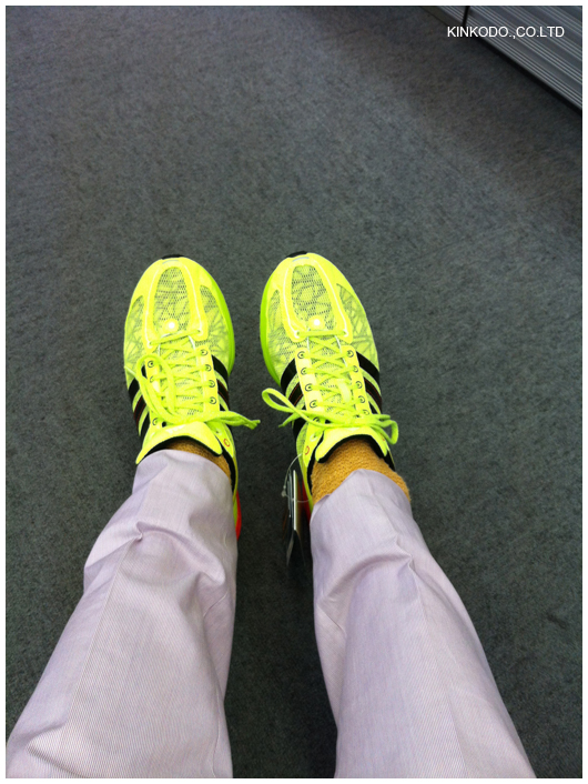 私ターサーの前の外側が減ってたのですが。どうやら外から入ってるみたいで、どうしてもスピードを上げるとそうなるのですが、adidasは外側から入ってちゃんと親指の拇指球から抜ける感じが良かった。次のレースは間に合いませんが、次の次には良いタイムが出るようにお願いします。