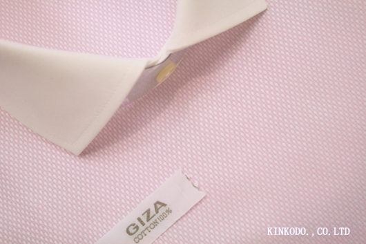エジプト綿GIZAの100番手の変わり織り。綺麗な淡いピンクの生地です。お仕立て上がり¥15,750-とリーズナブルな生地です。触りも柔らかな生地。他にブルーもございます。