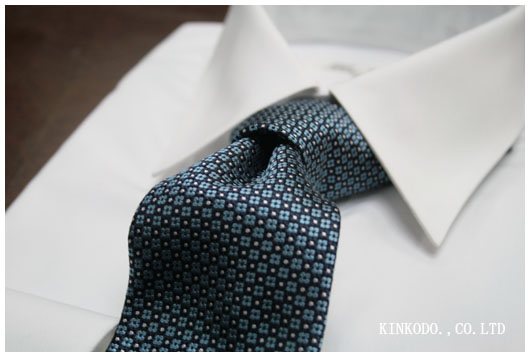 こちらはブルー。細い糸でしっかり織られているのでまるでプリントのように見えますが織ったネクタイです。触った質感やボリュームは流石といった印象。