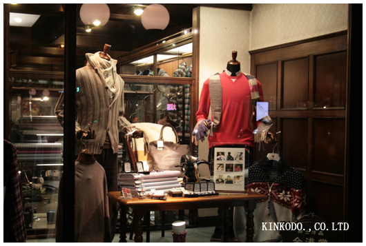 まぁレースの話はこのあとにして。レースを走ってもちゃんと午後からは仕事をしています。今日はウィンドウディスプレイを手直ししました。随分寒くなってきましたので、ストールを加えたのとJonnstons(ジョンストンズ)のカシミヤのグローブをボディに持たせました。