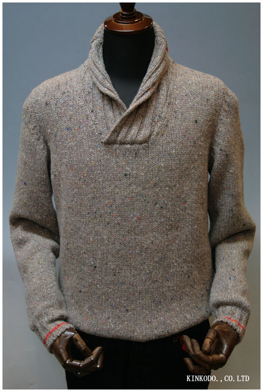 衿裏のブランドタグ「Gran Sasso」です。この手の雰囲気のセーターは色出しのこともあり、アクリルなどが入ったものも多いのですが素材はウール100%先にも記載しましたが、エルボーパッチはポリエステルのアルカンターラです。クリスマスプレゼントに如何でしょうか。