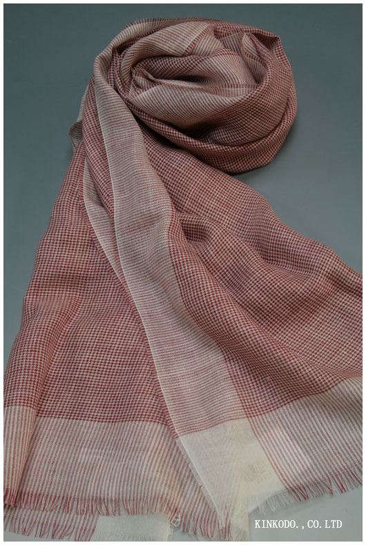 ジョンストンズのハウンドトゥース、千鳥格子のストールです。こちらは赤。