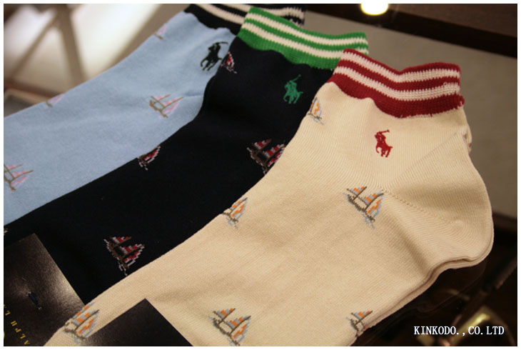 POLO ラルフローレンのヨット柄のスニーカーソックスです。先程お客様ご来店。50歳くらいの人へのプレゼントなんですが、「あっこれ可愛い」50歳でも履きますか?