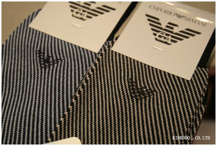 アルマーニのビジネスソックス。大きな綾織りになっておりまして、黒と紺と。