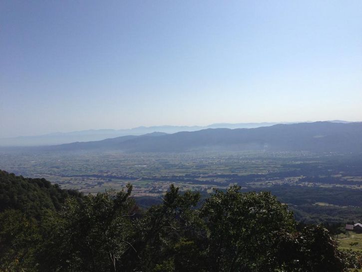 夕霧峠から富山県福光方面を見た写真です。いつも福光のお客様の所には車で行くのですが、次からは走っていくか?(笑)