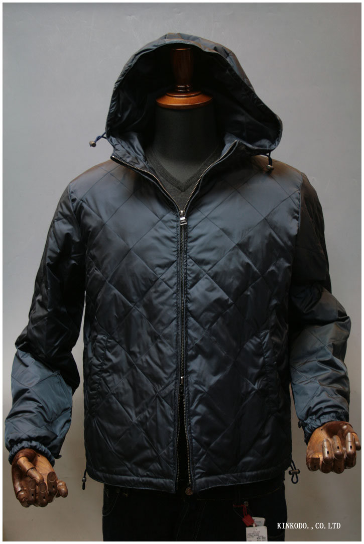 イタリアなど行くとこの手のブルゾン着ている人って多いですよね。キルティングのブルゾンなのですが、裾とフードにはループが付いていて調節が可能です。中は薄く処理してありますが、ダウン80%フェザー20%としっかりと防寒機能もあります。