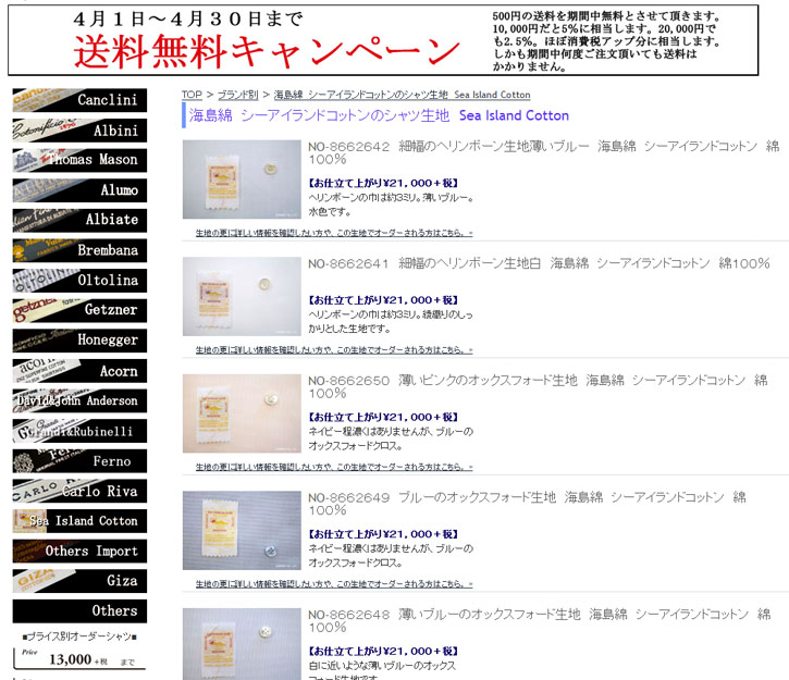送料サービスキャンペーン。シーアイランドコットンの生地の入荷。