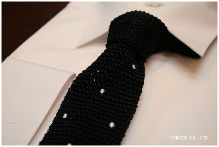 シルクのニットタイ。ただのニットタイでは面白くないので、ドット柄。