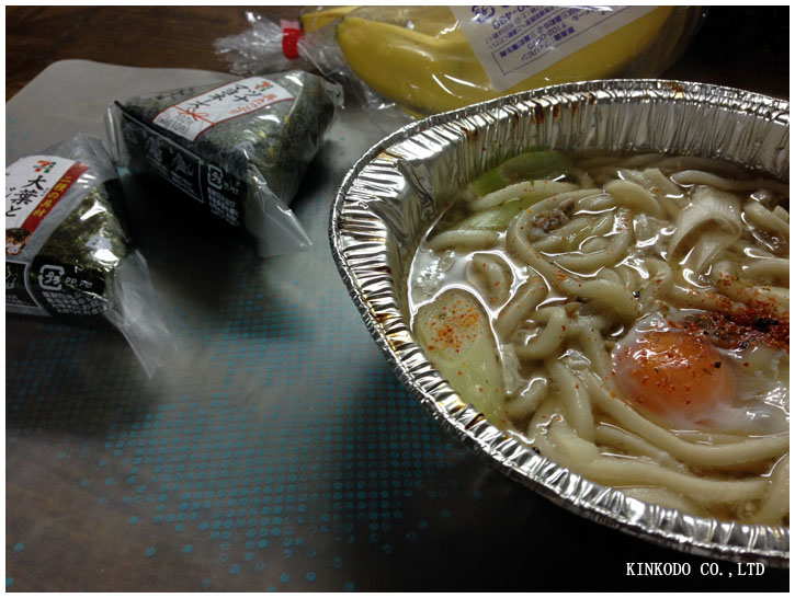以前に即席のカップうどんだったのですが、インスタントは良くないと指摘されて、それからはこちら。ただオニギリ二個を朝の5時には食べられず。うどん、オニギリ一個にバナナを食して集合場所へ。
