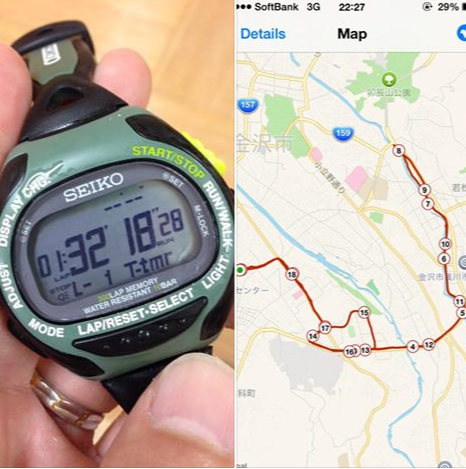 着替えて外に飛び出しました。フォームチェックを兼ねて走るつもりだしたのですが、やはりスピードが上がりすぎて、後半バタバタ。今日は19キロ走のつもりだったのに、給水無しで挑んだものですから、途中で脱水症状。それよりもガス欠ですね。12時に食事をとってから走り始めるまで何も摂っていないのですから。
