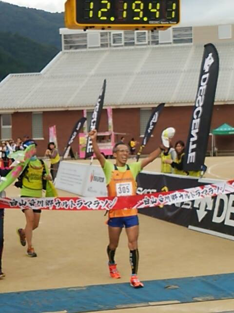 画像が小さくて申し訳ありませんが。12時間19分42秒 ゴールしました。復路の上りは全く走れず。下りで走れたので、自分としては良い結果になりました。