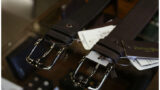 色はツートーン。ネイビーとブラウンの組み合わせ。かなり薄い素材です。中央で