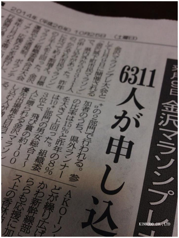 11月にあります。金沢マラソンのプレ大会10キロと3キロ合わせて6千人以上が参加しますが、なんと飛賞で100人に優先エントリー権がもらえる。60分1の確率。これにかけます。