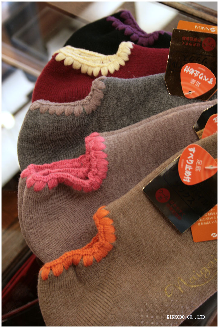 足口部分を縁取る三角模様の刺繍がハマグリに似ていることからハマグリパイルソックスと名付けられました。