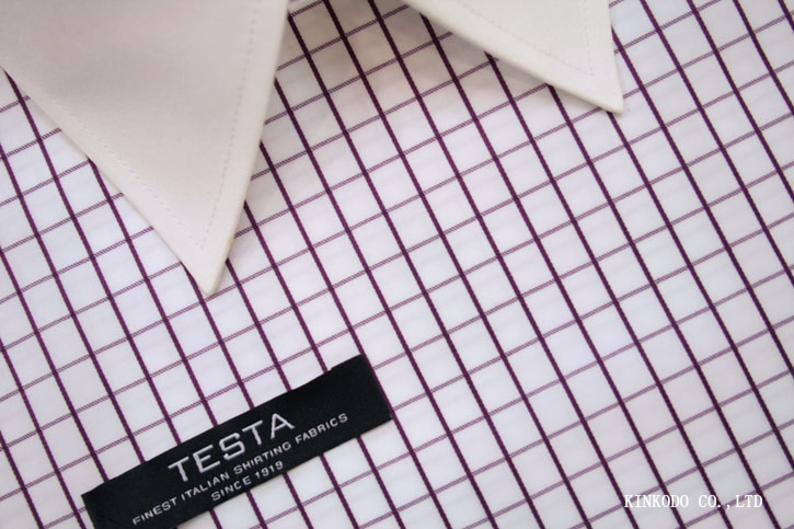 パープルのシンプルチェック生地 イタリア テスタ社製 綿100% 【お仕立て上がり¥18,000+税】