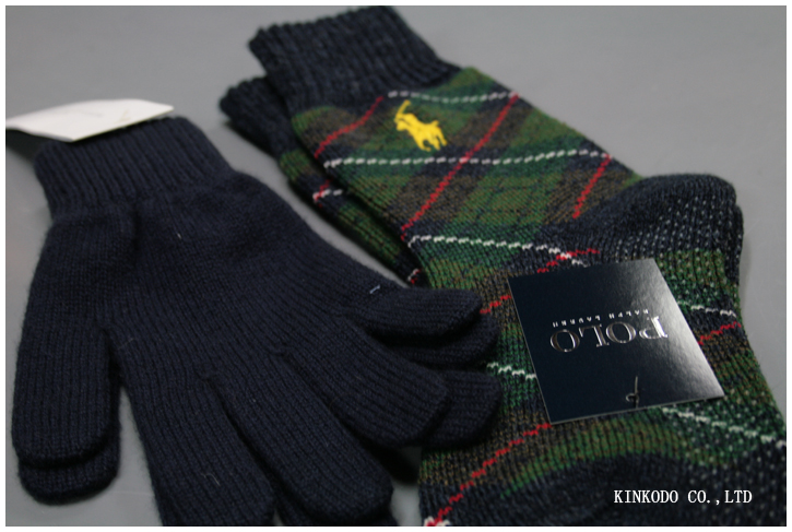 ラルフローレンの部屋履き¥2,300+税とJohnstonsのカシミヤグローブ¥7,500+税のセットとか。