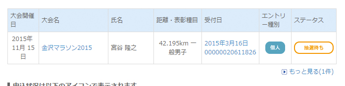 無事エントリー完了。もしこれも落ちたら・・・ 一応金沢も都市型マラソンとして考えると。え~~と何連敗?お願い地元だけはなんとかして。もう年齢が年齢なんだから。
