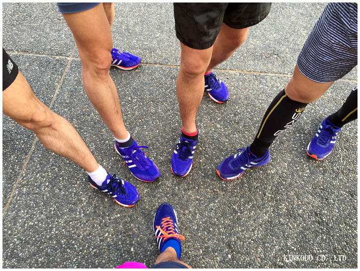 こんな朝の早くから25人も集まり。先日アップしたadidasブーストのレンタル履いたメンバーが。