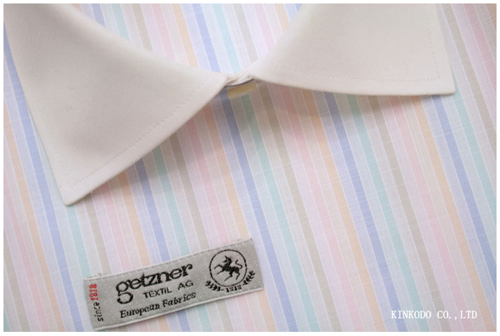 チェックの生地とストライプの生地がありまして、当店のお客様で、これを1着ずつご注文頂き、ボディはストライプ、衿とカフスはチェック、その逆で、ボディはチェック、衿とカフスはストライプ。という2枚のシャツをお作り頂いているお客様がいらっしゃいます。(まだ完成はしておりません)ストライプとチェックとで同じ色合いのものってあるようで、ないのです。このような生地があった場合はそのようにお作りするのも面白いかも知れませんね。ただ一度に二枚のご注文を頂かないといけないのですが。