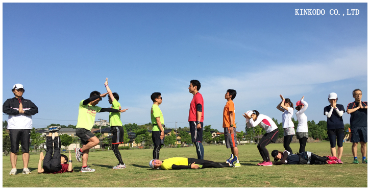 チームの朝練。初めての漢字人文字。