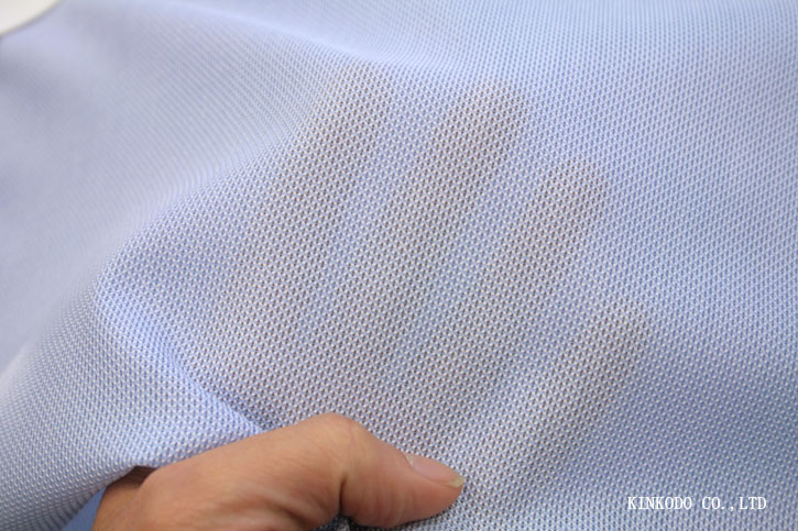 夏素材には様々な種類があります。リネン・ラミー・綿ボイルなど。もう一つ写真のようなメッシュ生地。肌触りもさらっとしてますし、透け感もそんなにない。麻素材と違ってシワになりにくく、そして涼しい。メーラー意外にメッシュの生地をお勧めさせて頂きます。