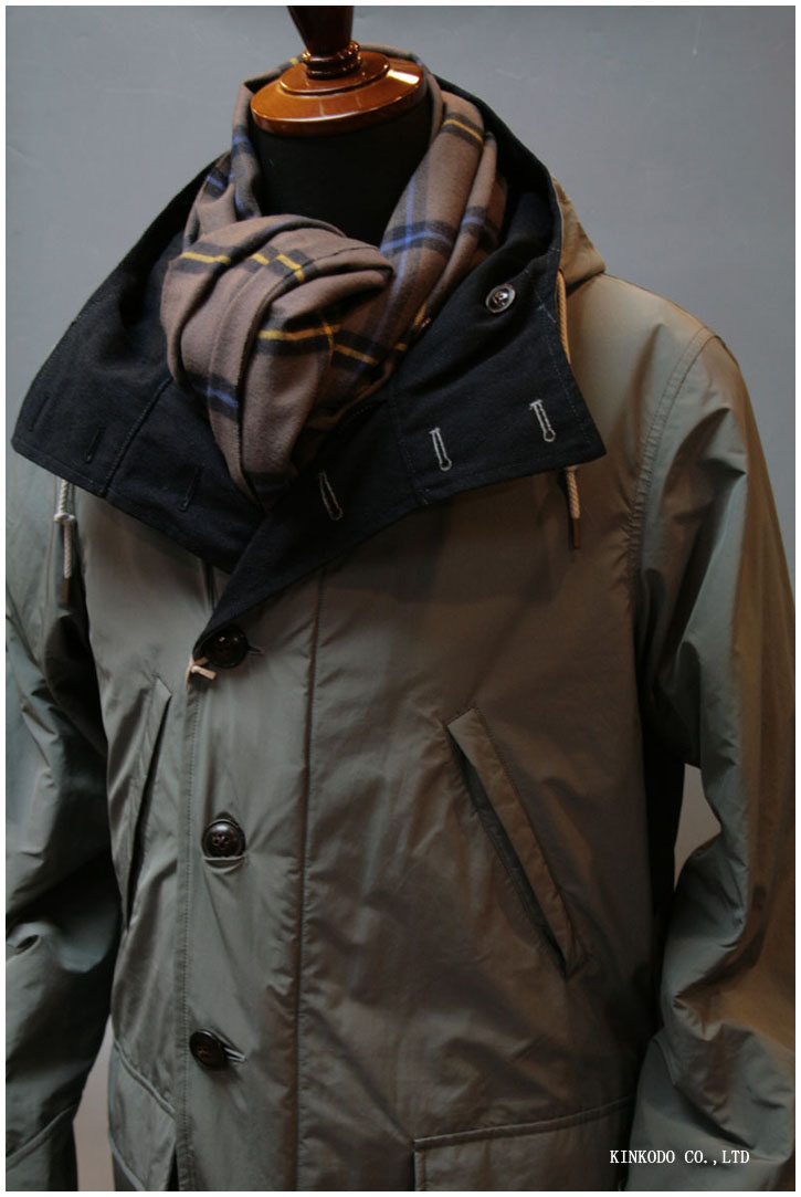 ウール100%ですが、柔らかさはカシミヤに近いくらいソフトです。ただカシミヤほど毛羽立ちはなく、肌には優しい素材です。大判ですからどのように使うかはお客様次第。写真はコートに首元をボリュームを出す感じでコーディネートさせて頂きました。