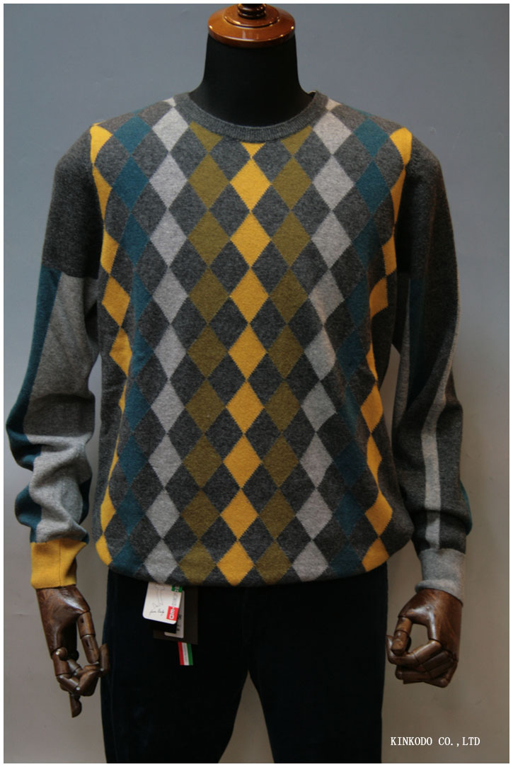 BOB【ボブ】ボディの裏表、そして袖全てが柄違いのクルーネックセーターです。ボブらしいセーター。これなぞ如何でしょうか。
