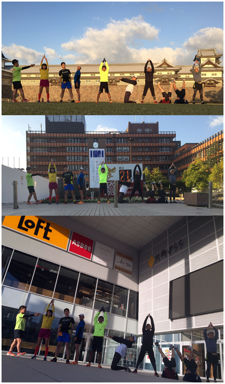 先ずは五十間長屋での人文字(当然自撮り)そして、金沢市役所前の金沢マラソンカウントダウンボードの前で人文字。そして片町きらら前で人文字。全て文字は「KANAZAWA」天気も良く楽しく走れました。こんなことやってるばかりではありません。というか他にも写真撮りました。