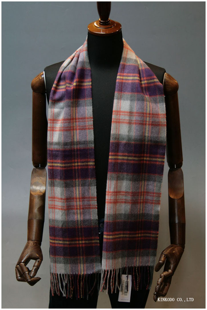 Johnsotons(ジョンストンズ)のアンゴラとメリノウールのパープルチェックストール価格12,960円(税込)