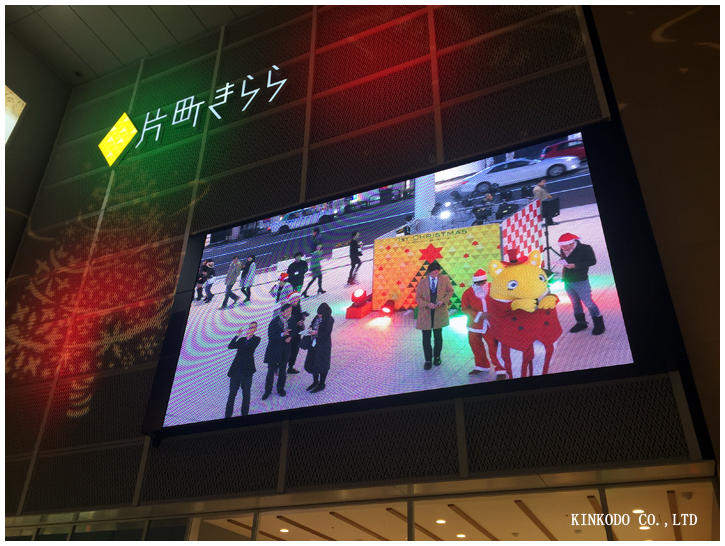 片町もクリスマスムードが高まってきました。今日は片町キララで、大型ビジョンとレーザーを使ったクリスマスのイベントが開始されました。