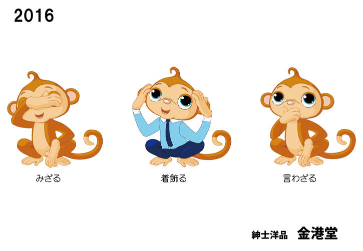 今年は申年。さて金港堂のさるは「着飾る」お洒落も楽しんで、いつもの年より着飾って楽しく明るい一年になることを願っています。