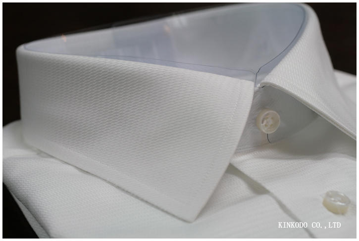 立体感ある螺旋状の白ドビーの生地 イタリア アルビニ社製 綿100% お仕立て上がり¥18,000+税。