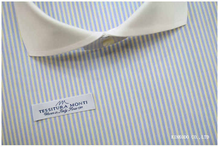 ブルー×イエロー爽やかなストライプ MONTI モンティ社製生地 綿100% お仕立て上がり¥18,000+税