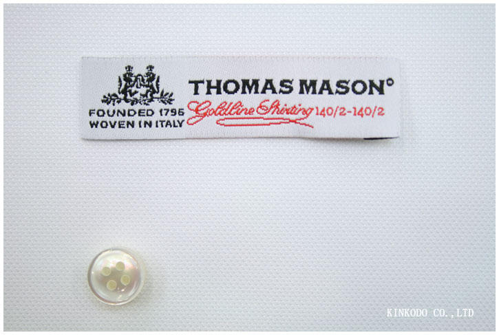 トーマスメイソン最高級番手白のピンオックスフォード生地 140番手ゴールドライン イタリア・トーマスメイソン社製 綿100%