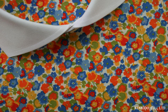衿の裏、カフスの裏、上前立ての下、下前立ての表裏をこのような生地を使うわけです。第一ボタンを外した時に綺麗な柄が見えるということです。
